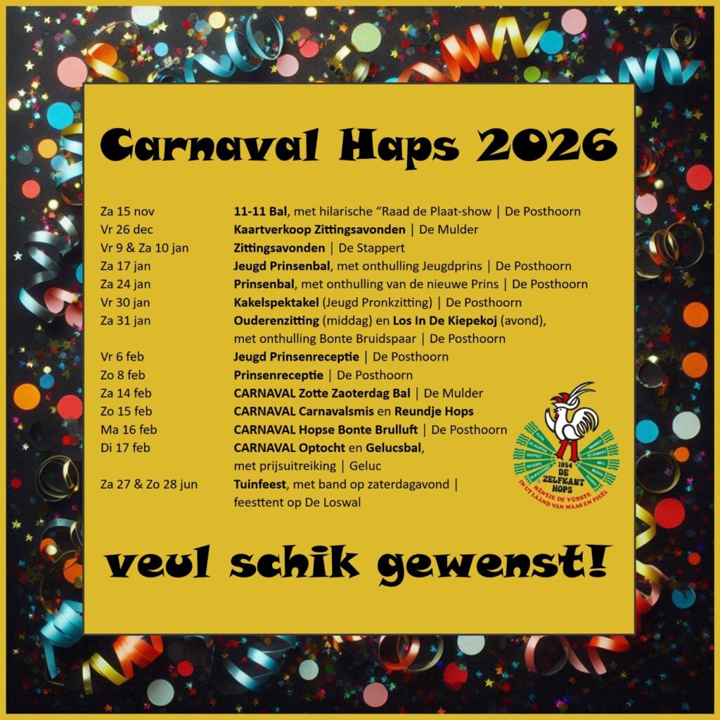 De 11e van de 11e is geweest en dus zijn we alweer druk bezig met het organiseren van de Zittingsavonden. Een flink aantal artiesten (oude […]